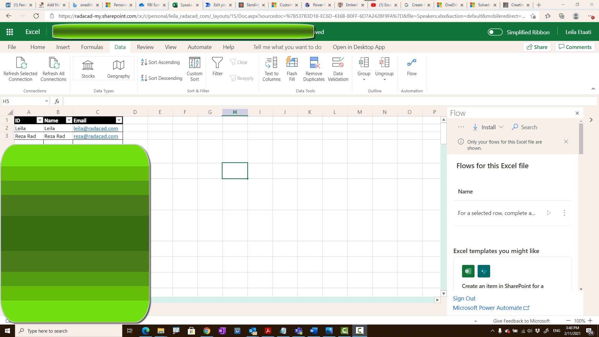 The first step was to create the list, I create a online Excel File to store speakers name and email in table format excel file and I put it inside my OneDrive folder.