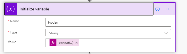 In Power Automate, I create a new action as Initialize Variable and for the Name of the variable I put Name and the type was String. next, for the value, I use the Concat() function to